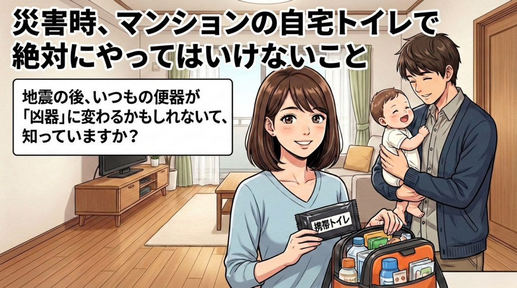 飲料水や食料は準備していても、意外と見落としがちなのがトイレ問題です。特にマンションなどの集合住宅において、災害時のトイレの扱いを間違えると、ご近所を巻き込む取り返しのつかない大惨事に発展するかもしれません。
