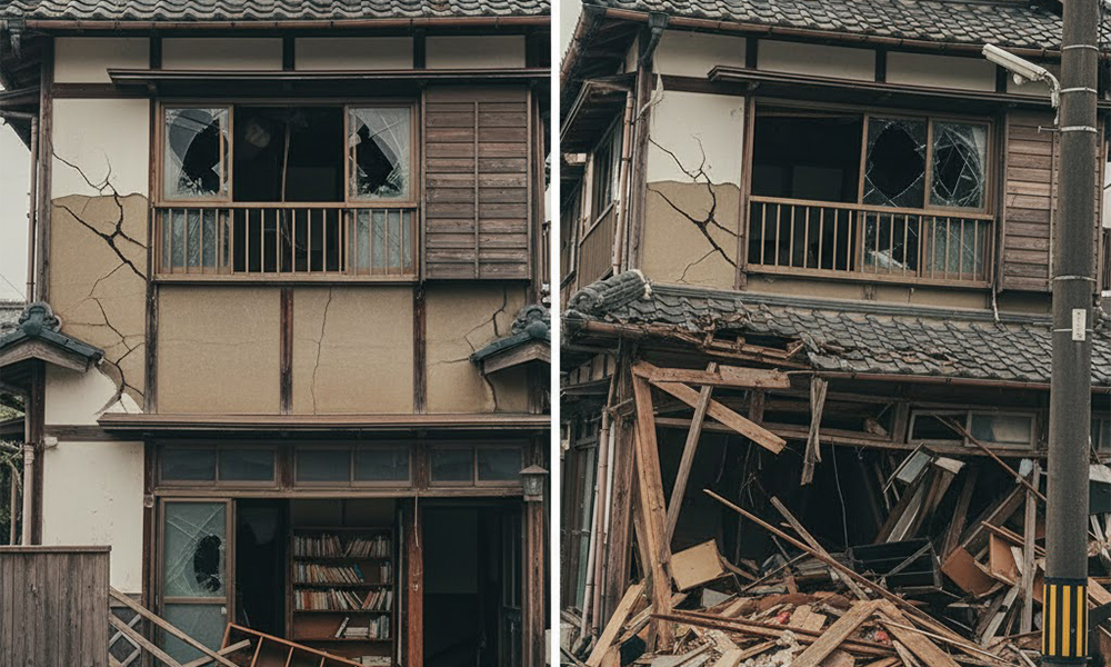 一方で、新耐震基準(1981年6月以降)で建てられた住宅は、「震度6強~7でも倒壊・崩壊しない」設計ですが、これはあくまで「人命を守る」ための最低ラインです。特に熊本地震では、この新耐震基準の住宅が倒壊した事例が報告されています。これは、地震の揺れが何度も繰り返されたことによる「繰り返しの揺れによるダメージの蓄積」が主な原因とされています。