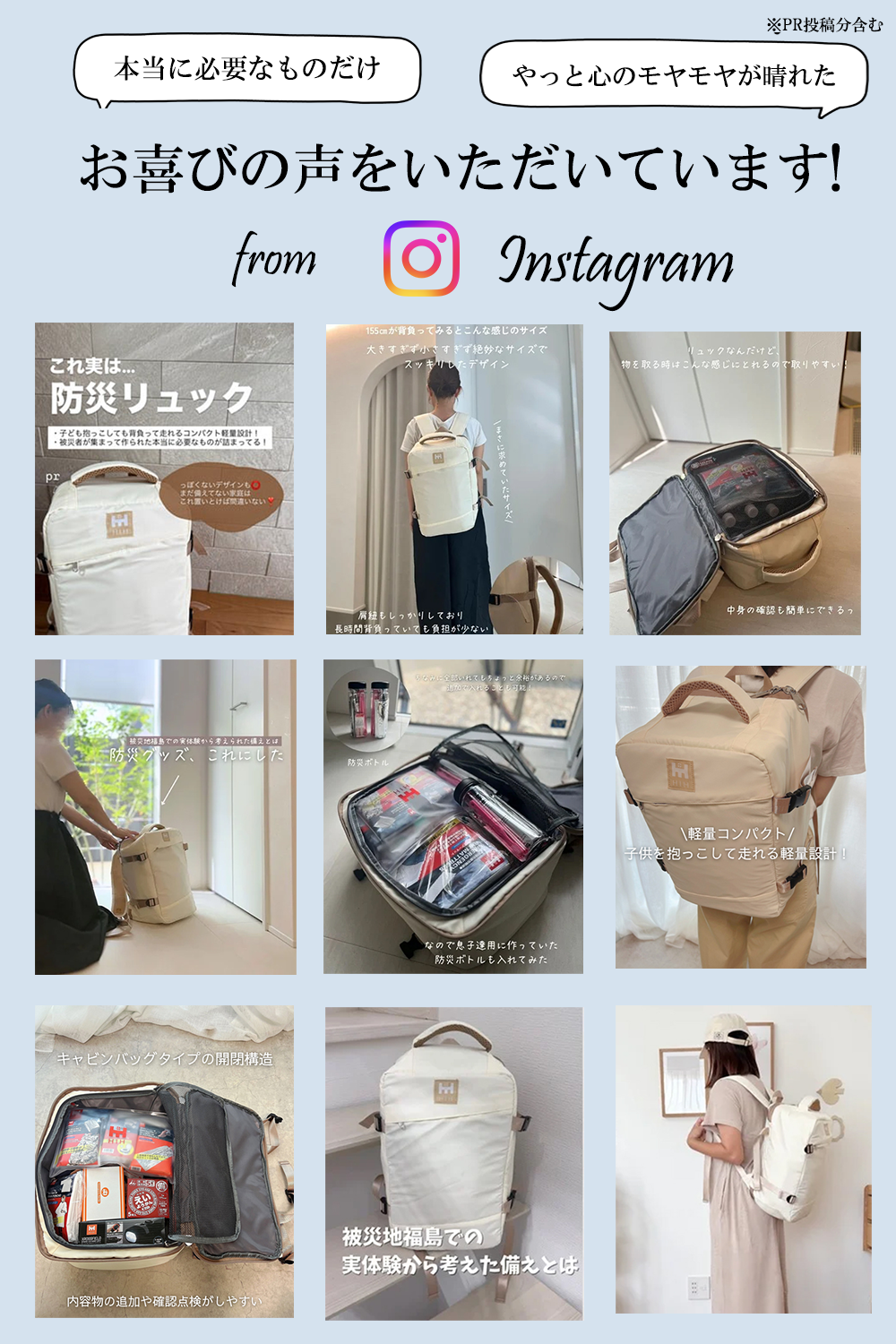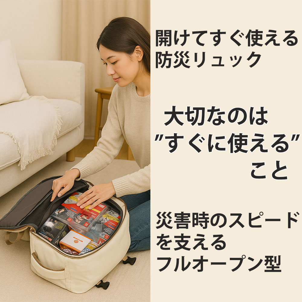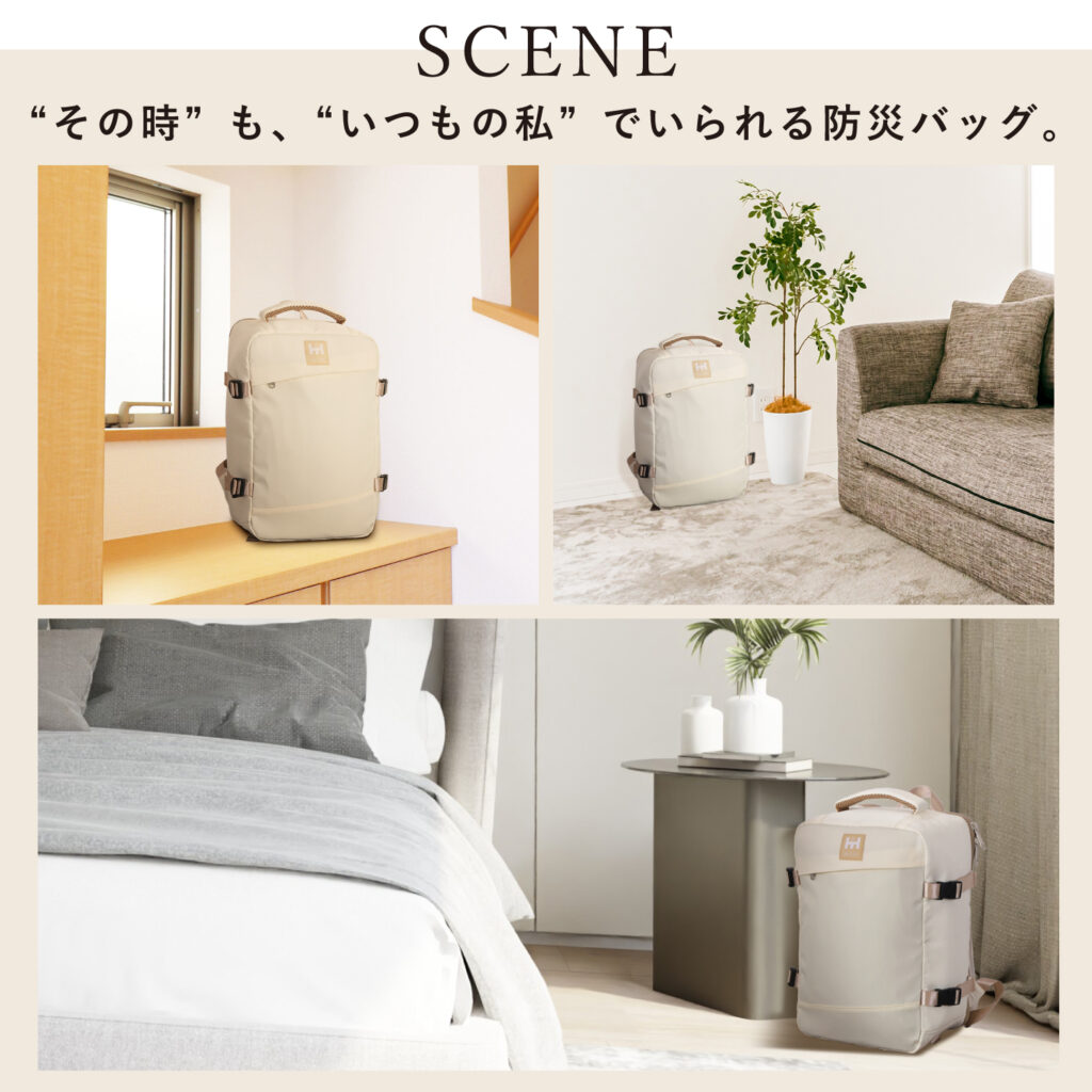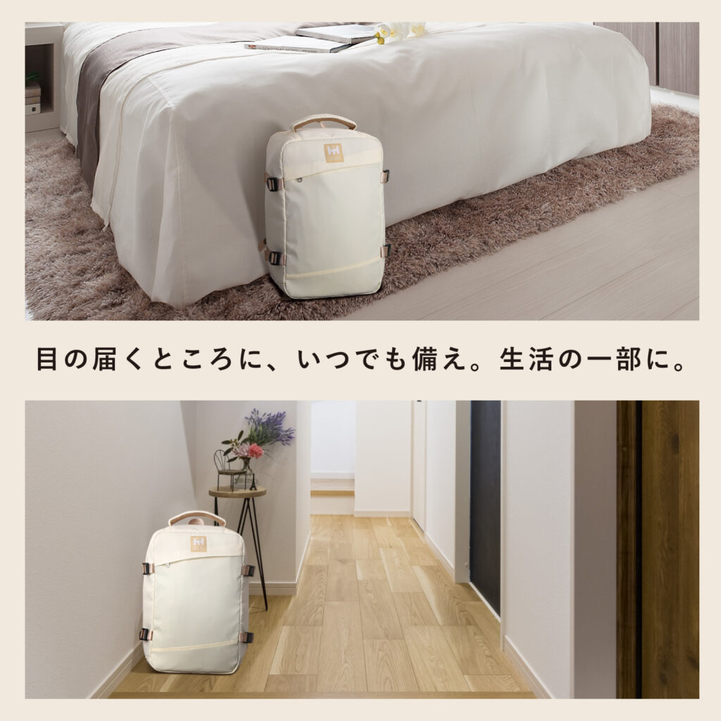 女性の目線で設計され、“持ち出しやすさ”と“安心感” を両立した、新しいかたちの防災バッグです。