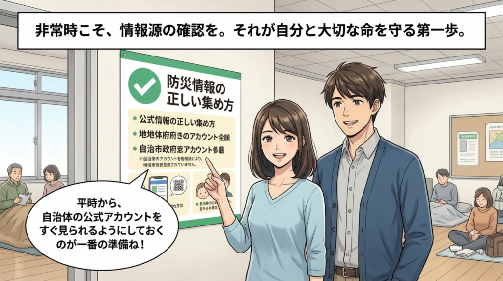お住まいの自治体の公式LINEやX(旧Twitter)をフォローし、すぐに防災ポータルサイトにアクセスできるようにブックマークしておきましょう。「正しい情報源」を確保しておくことは、水や食料の備蓄と同じくらい、家族の命を守るための強力な備えになります。