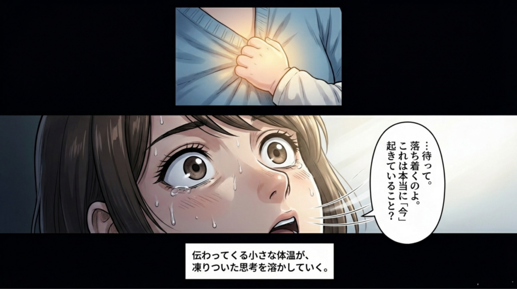 しかし、胸に抱いた我が子の小さな体温が、彼女の凍りついた思考を少しずつ溶かしていきました。