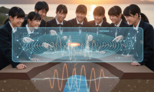 地震発生から、沿岸部に津波が到達するまでの時間も、基本的な速さ・距離・時間の公式を使って大まかに把握することができます。地震発生から津波までの時間の予測は、人命に関わる非常に重要な情報であり、この予測の基礎も地震波の伝達速度の計算に基づいています。