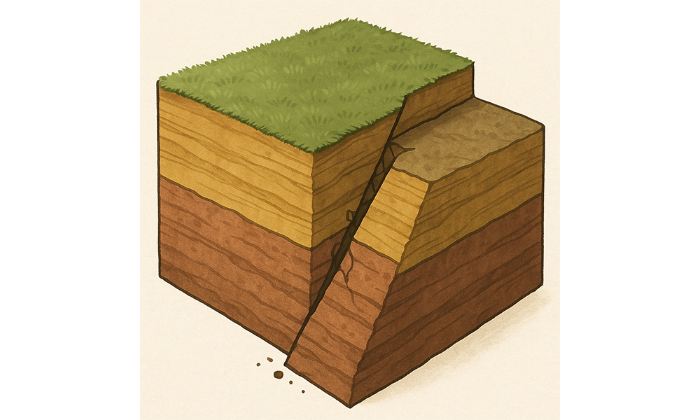 活断層を理解するためには、まず断層の基本的な定義から知ることが重要です。断層とは、地球の表面を覆う岩盤(プレート)の層に大きな力が加わり、割れてずれてしまった状態のことを指します。地中には、ひずみが蓄積して限界に達することでずれ動く「割れ目」がたくさん存在しているのです。これらの岩盤の割れ目が、地震を引き起こす原因の根本となります。