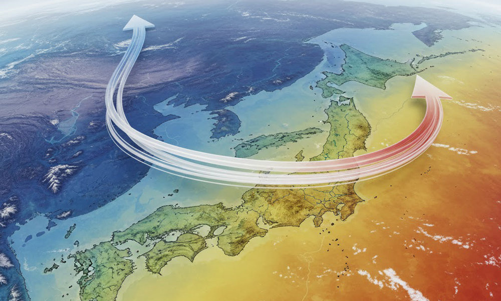 日本で感じる特徴的な季節の風は、ユーラシア大陸(りくち)と太平洋(うみ)との「温まりやすさの違い」によって生まれます。陸は海より温まりやすく、冷えやすい性質があります。