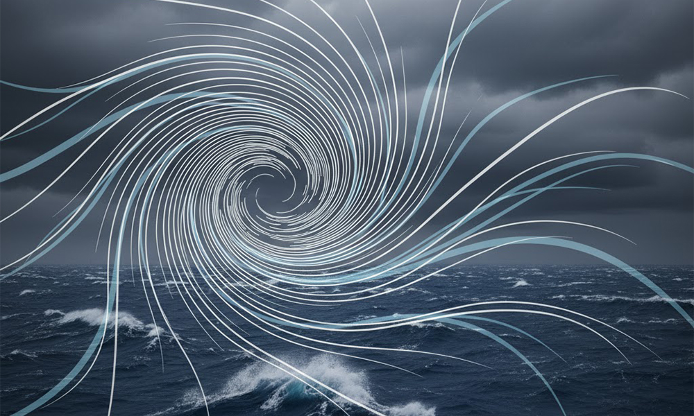 台風は、暖かい南の海で発生する、中心の気圧がまわりより極端に低い「熱帯低気圧(ねったいていきあつ)」が発達したものです。中心の気圧が低ければ低いほど(例えば950hPaなど、数字が小さいほど)、まわりの高気圧との差がとてつもなく大きくなります。そのため、猛烈(もうれつ)な風が中心に向かって反時計回りに吹きこみます。