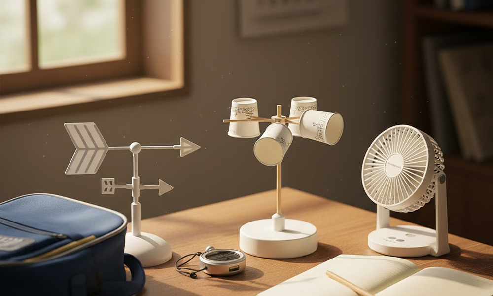 それを家の庭やベランダの同じ場所に置いて、1週間、決まった時間(例:朝8時、昼3時、夜8時)に、風向きと風の強さ、そのときの天気を記録します。海の近くや山の近くなら、天気と時間によって風向きが変わる「海風・陸風」や「山風・谷風」が本当にあるか調べられるかもしれません。