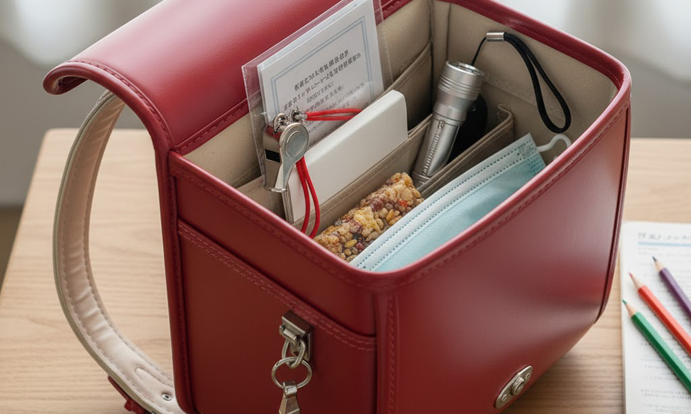 ### 子供 防災グッズをランドセルに入れて毎日備える