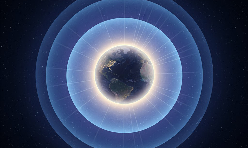 私たちの頭の上には、遥か上空、地球の大気が終わる宇宙空間との境目まで、膨大な量の空気が層になって積み重なっています。目には見えず、重さも感じにくいですが、空気にも確かに質量(重さ)があります。この空気の柱全体の重さが、地表や私たちの体を押し付けている力、これが「気圧」の正体です。
