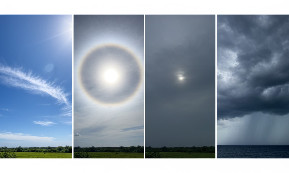 - 低気圧が近づいているサイン 天気が崩れるサインは、まず上空の高いところから現れます。