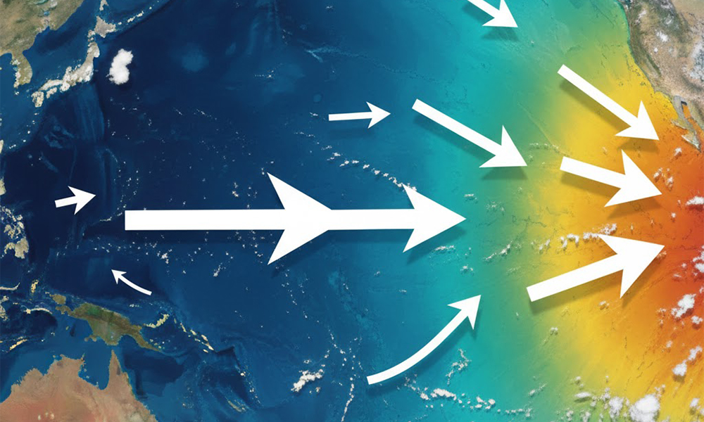 この冷たい水の湧き上がりが海面水温の急激な低下を引き起こし、ラニーニャ現象の主要な原因となります。暖かい海水が西へ、冷たい海水が東へ、という極端な水の偏りが生まれるのがこの現象の特徴です。