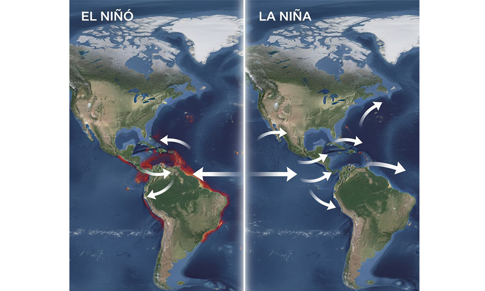 エルニーニョとラニーニャの違いは、太平洋赤道域の海面水温の変動傾向が完全に反対であるという点に尽きます。ただ単に水温が高いか低いかというだけでなく、その結果として大気の循環にも真逆の影響を与えるため、世界中の天候に異なる影響を及ぼします。