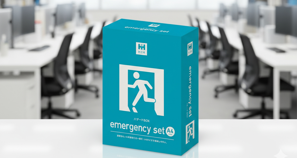 「ハザードBOX stay」は、限られたスペースでもしっかり備えられるBOX型の防災セットです。ボックスファイル型の省スペース設計で、オフィスの棚や引き出しにもすっきり収納。共有スペース・ロッカー・デスク下など、置き場所を選びません。