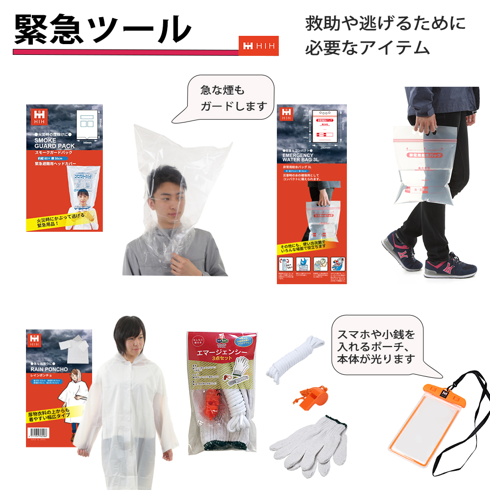 HIH 中身だけの防災セット — 自分のバッグに合わせて自由に備える