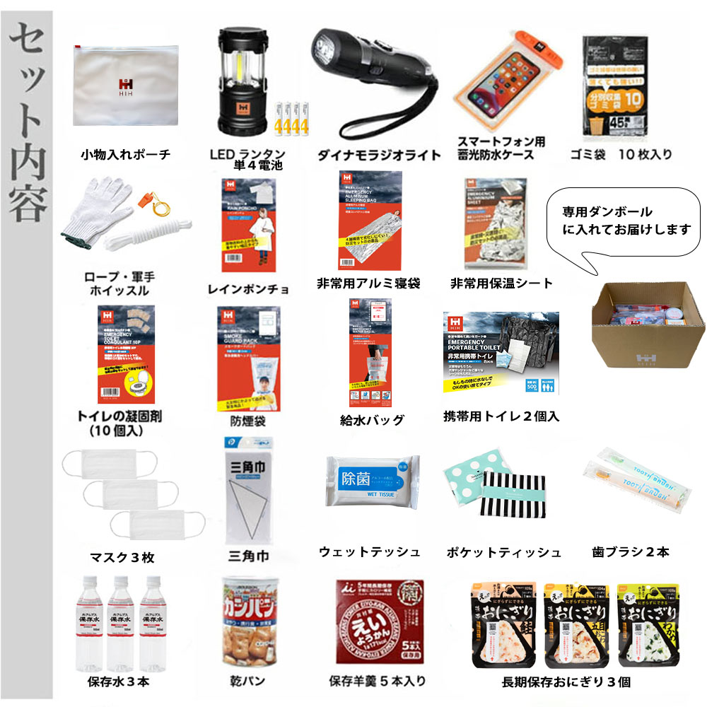 必要な中身が一式そろった「HIH 防災セット(中身のみ)」が、あなたの備えをスマートにサポートします。