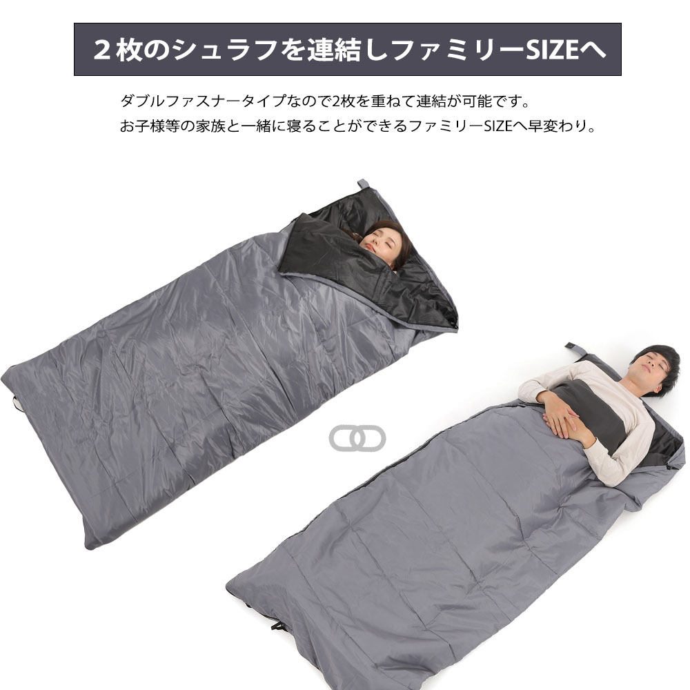 - 春・夏・秋は、薄手のコンパクトシュラフ単体で快適に使用できます。