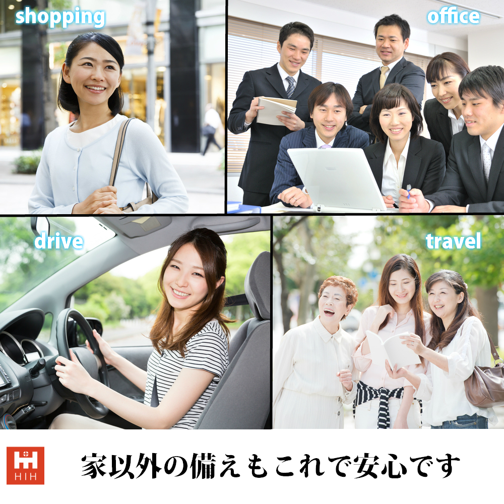 オフィスのデスクやロッカーに備えるのはもちろん、外出時や旅行先など自宅以外での備えとしても最適です。