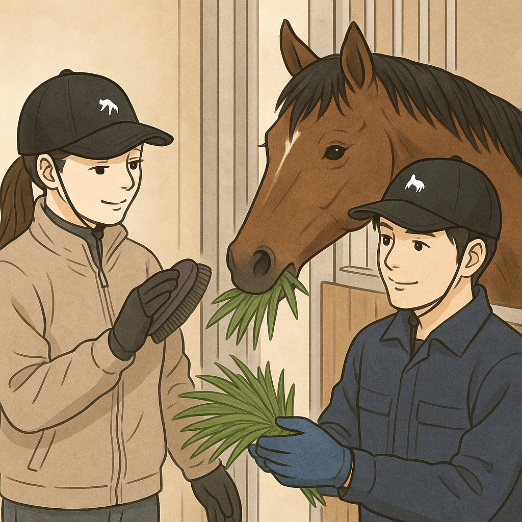 北海道の広大な自然の中で競走馬の飼育・育成を行うこちらの牧場様では、**日々の作業時に着用できる「違和感のないヘッドギア」**を求めて、防災機能も兼ねたボウメットの導入を検討されました。 特に、作業服との相性・見た目の統一感・安全配慮を重視し、HIHの「黒ボウメット」をベースに、牧場オリジナルのロゴを刺繍したカスタム仕様での納品となりました。