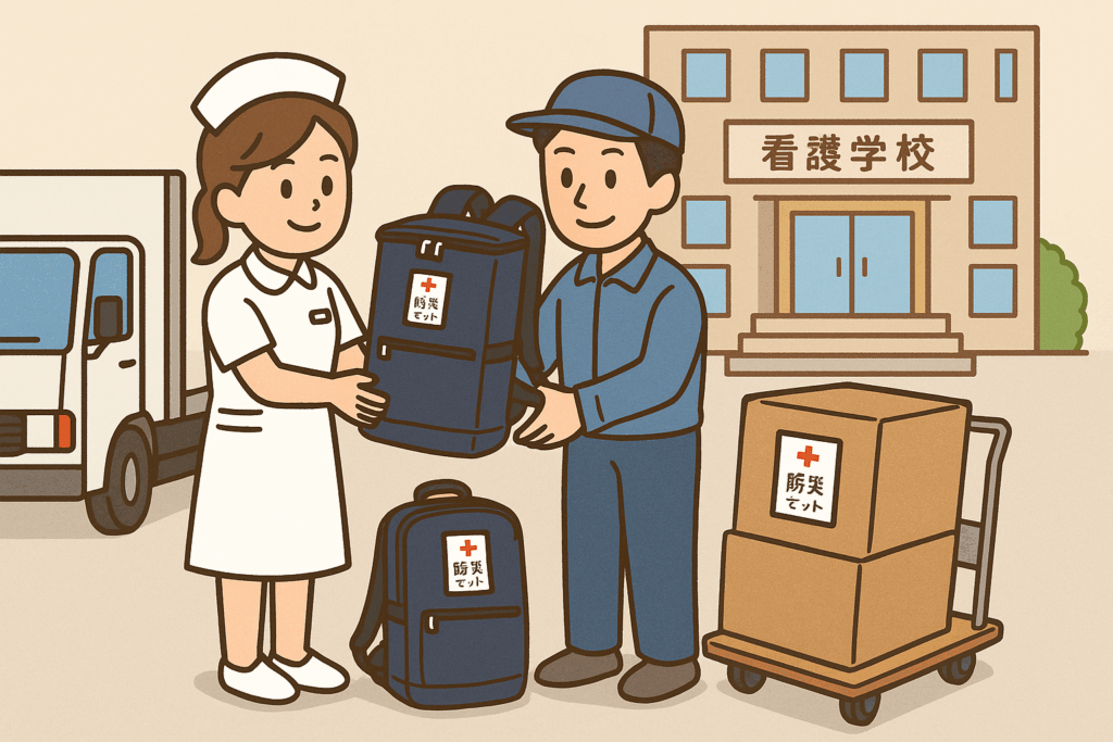 福島県内の看護系専門学校様では、毎年新入生を対象に、学校独自にカスタマイズした防災セットを支給されています。 内容は、医療知識のある生徒が災害時にも安心して避難・待機できるよう配慮されたもので、校内での保管用を設計。 保存食・水・ライト・マスクなど基本の備えに加え、学校の指定要素を反映した完全オリジナル仕様となっています。 ご担当者様からは 「地域特性や教育内容に合わせた構成ができたこと、納期もスムーズで安心できた」 とのご評価をいただいております。