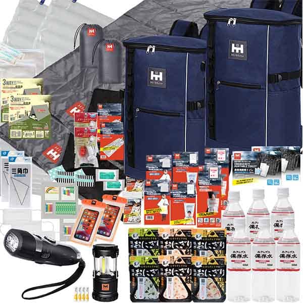 容量を最終的に決めるのは、厳選された水、食料、衛生用品などの中身