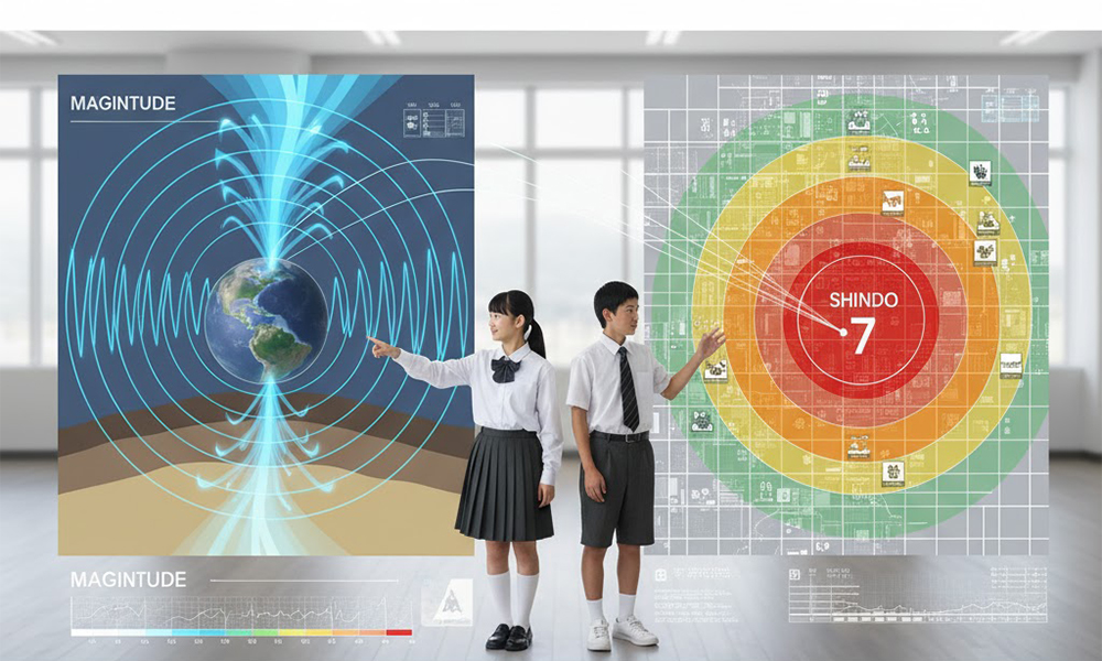 - 震度とマグニチュードは異なり、震度は「揺れの強さ」、マグニチュードは「地震の規模」を示す