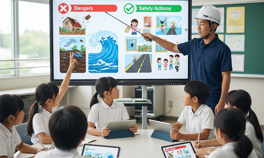 防災はむずかしいことではなく、自分や家族をまもるための生活知識です。きょう学んだことをおうちの人と話しあい、これからの台風シーズンも安全に過ごしましょう。
