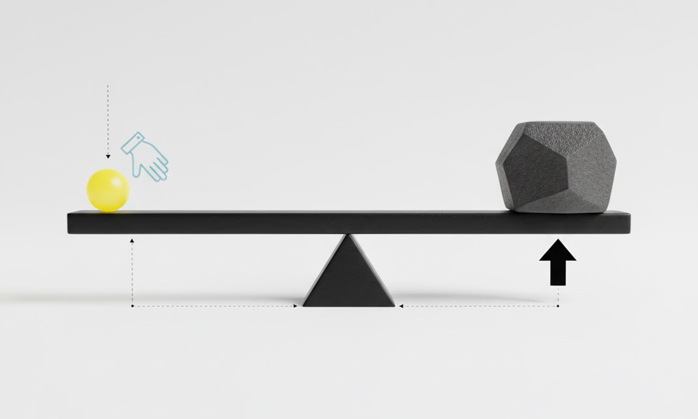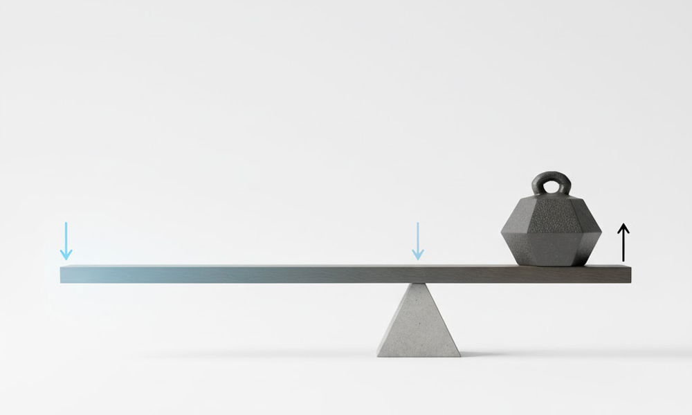 てこの原理とは、ひとことで言えば「小さな力で大きな力を生み出すためのしくみ」のことです。物理の基本的な原理のひとつで、これがあるおかげで、私たちは自分一人の力ではとても動かせないような重い物を動かすことができます。