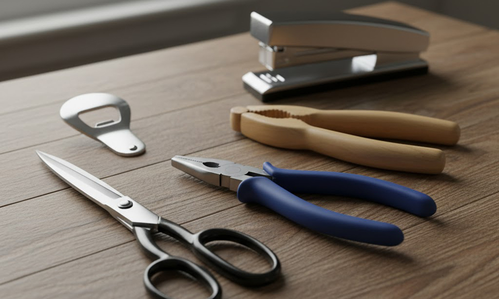 「第2のてこ」の代表例は、瓶のフタを開ける「せんぬき」です。他にも、荷物を運ぶ一輪車や、紙に穴を開ける穴あけパンチもこのタイプに含まれます。