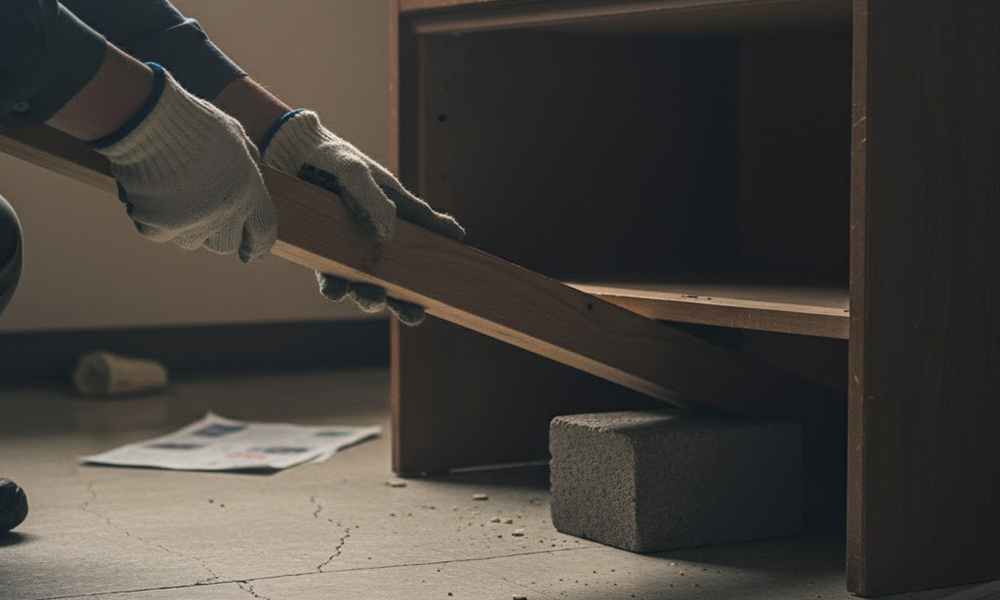 バール(かなてこ)や丈夫な角材、鉄パイプなどを「てこ」として使います。 倒れた家具やブロック塀のすき間に角材を差し込み(作用点)、支点となる丈夫な石や別の角材を近くに置きます(支点)。そして、角材のできるだけ端(力点)に体重をかけることで、作用点であるブロック塀の端を少しだけ持ち上げることができるのです。