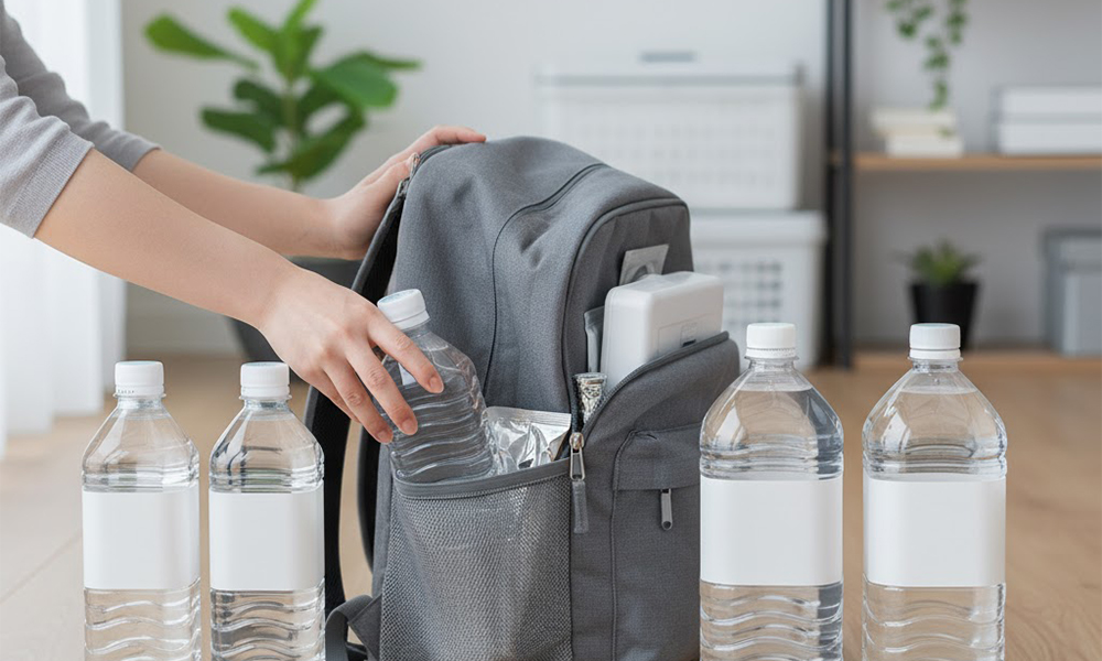防災リュックの水は何リットル?重いを避ける保存水と備蓄アイデア