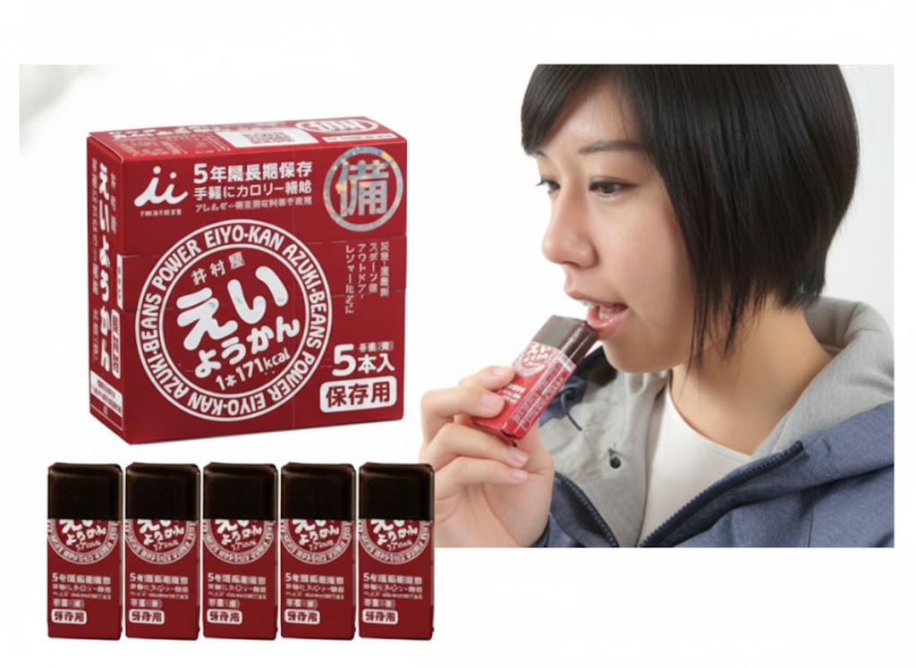 「えいようかん」は、そのコンパクトさから自宅の備蓄だけでなく、持ち出し用非常用バッグ(一次持ち出し品)に必ず加えておくべきアイテムです。また、甘さ控えめのものから、様々な風味のもの(チョコ味など)もあるため、飽きずに備蓄を続けやすいという点も評価できます。