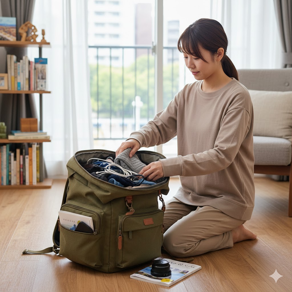 • 一次避難用リュック: 災害直後、すぐに避難所や安全な場所に移動するための最低限の食料・水・道具。