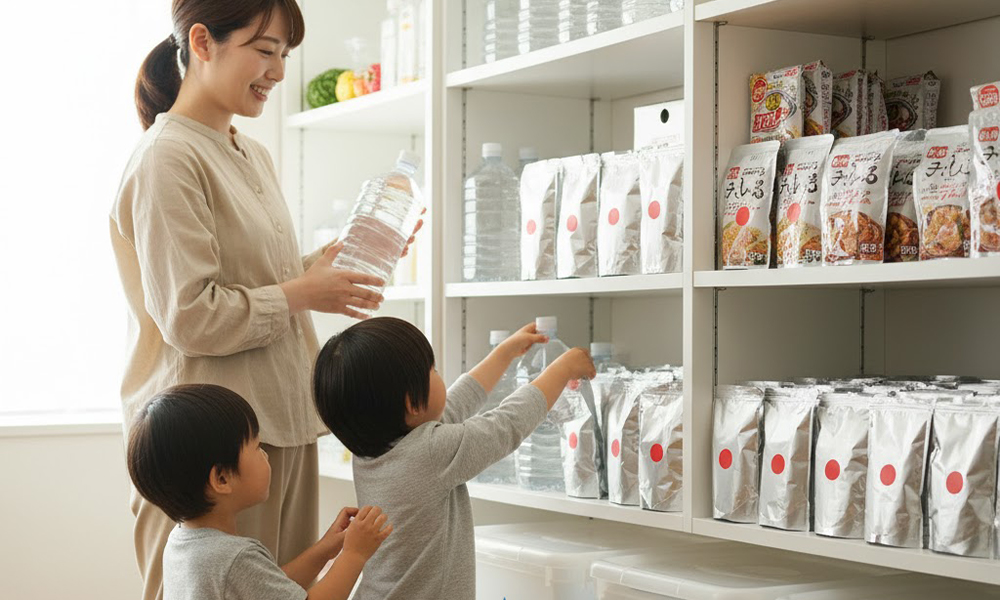 備蓄品には、3日分〜7日分の飲料水・食料のほか、生活用水を確保するための給水用ポリタンク、調理を可能にするカセットコンロと予備ボンベが含まれます。水は、断水時にトイレや消火などに使う生活用水も考慮し、普段からお風呂の残り湯を溜めておくなどの工夫をしましょう。